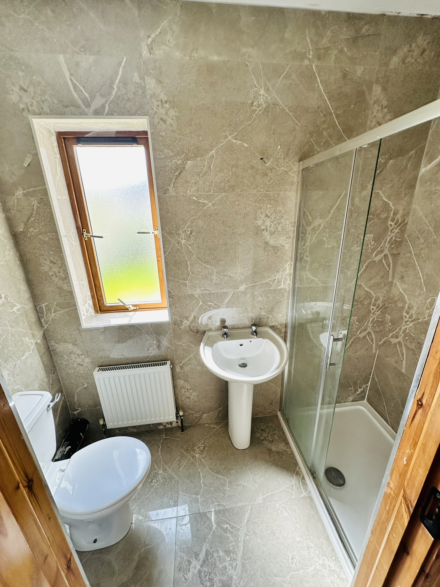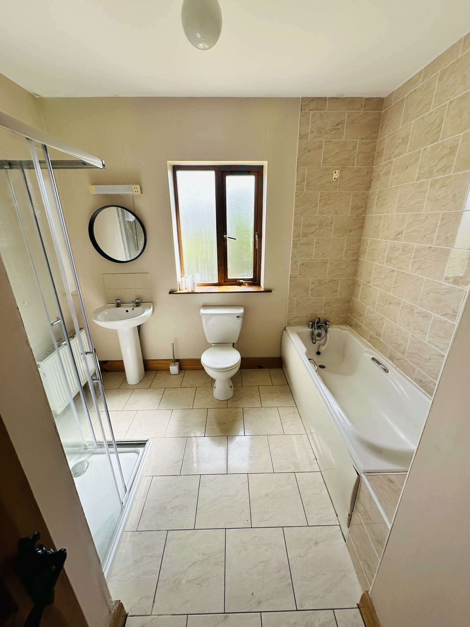 Upon entering, you are welcomed by a bright and inviting hallway with large floor floor tiles. Off the hallway is a spacious sitting room with an open fire and large windows that flood the space with natural light. The property also features a modern, fully fitted kitchen with ample storage and a large dining area with a patio door leading to the garden. There is a WC and a separate utility room adds practicality. Also on the ground floor there is a double bedroom which could be also used a home office or second living room.